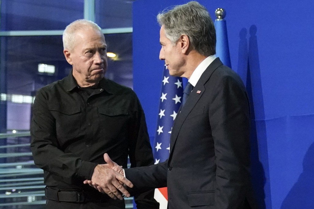 ▲布林肯与以色列国防部长加兰特会谈。美联社