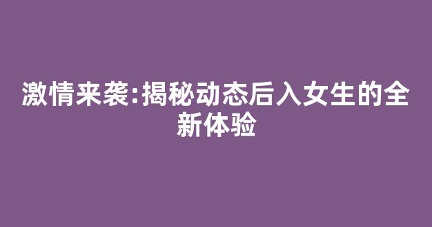 大家好,今天我来和大家聊一聊关于激情来袭:揭秘动态后入女生的全新体验的问题。在接下来的内容中,我会将我所了解的信息进行归纳整理,并与大家分享,让我们一起来看看吧。