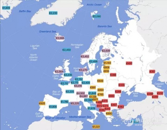 咱们再来看看欧洲,欧洲是环球发财国家最麋集的大洲,包含英法德意在内的西欧大大都国家的人均税后月支出大要在1500-3000欧元之间;西欧少少数小国、城邦国家和北欧个体国家的人均支出稍高,如挪威3452欧元、丹麦3270欧元;但东欧所有国家都在1000欧元之内,跨越一半的东欧国家居然还不到500欧元/月。