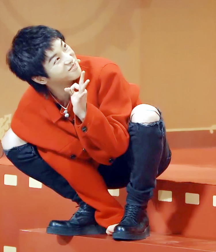 这个动作看起来真的挺奇葩的,一般人估计很少会这样蹲在地上。但华晨宇这样的时候还真不少。比如在《旅途的花样》里: