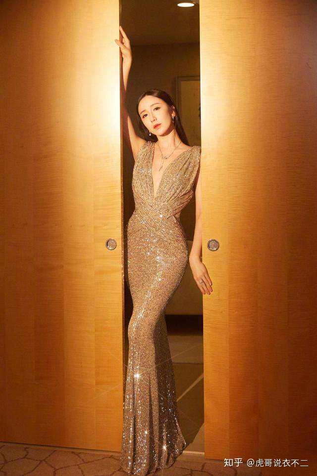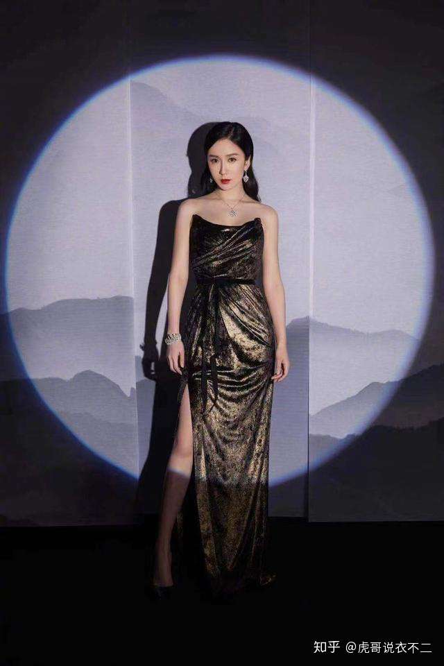 可以看到,这件号衣裙的计划感也很强,特别容易凹出性感造型。起首是上部门裙身的计划,不消说深v型领口绝对是秀性感最直接的方法,堪称是“中路全开”了,性感结果一览无余,搭配一条V字型吊坠,起到润饰面部线条的结果,使她本来就很尖的下颌加倍流利细微。肩领处的褶皱计划丰硕了裙身的造型,腰部的褶皱互相交织,一方面起到收腰结果,另外一方面无处不在的褶皱也使得这件号衣裙加倍有辨识度。
