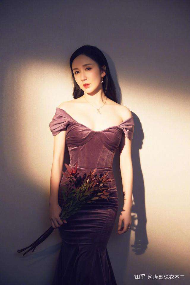 这组图片中,娄艺潇一样一身包臀号衣裙出镜,大秀玲珑有致的身段曲线。紫色是浪漫高贵的色彩,特别能陪衬出女性典雅风雅的气质,并且紫色很显皮肤白,使她的皮肤看下去加倍白净精致。